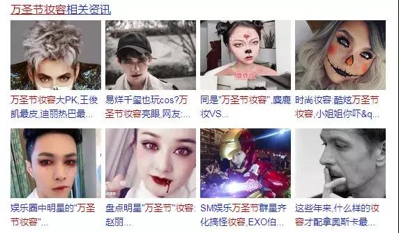 至于妝容怎么畫?大家可以在網(wǎng)上搜“萬圣節(jié)妝容”,就會(huì)有很多創(chuàng)意造型,隨便模仿一下就能吸睛無數(shù)。