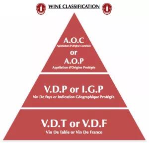 ▲ 法國葡萄酒等級(jí),位于金字塔頂尖的是A.O.C級(jí)別,最低端的級(jí)別為餐酒(V.D.T)