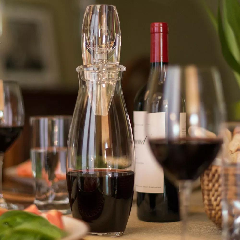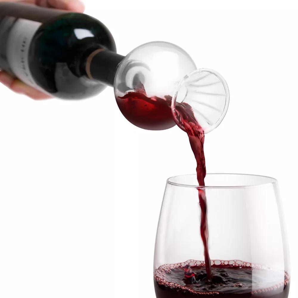 隨著科技的發(fā)展,目前市面上還有一些特殊的醒酒器。比如快速醒酒器,你只需要把它安裝在酒瓶口,然后像往常一樣倒酒即可。由于使用快速醒酒器醒酒,葡萄酒的氧化速度會(huì)比使用普通醒酒器時(shí)快很多,所以醒老酒的話,最好不要使用它。