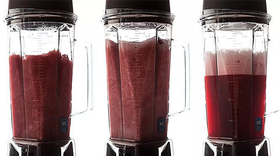 首先潷去酒渣,將酒全部倒入攪拌器中,選擇最高檔的轉(zhuǎn)速,攪拌30~60秒。