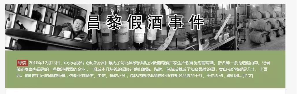 眾所周知,9年前,央視《焦點訪談》曝光了河北昌黎縣葡萄酒廠家生產(chǎn)假冒偽劣葡萄酒、傍名牌一條龍造假內幕。