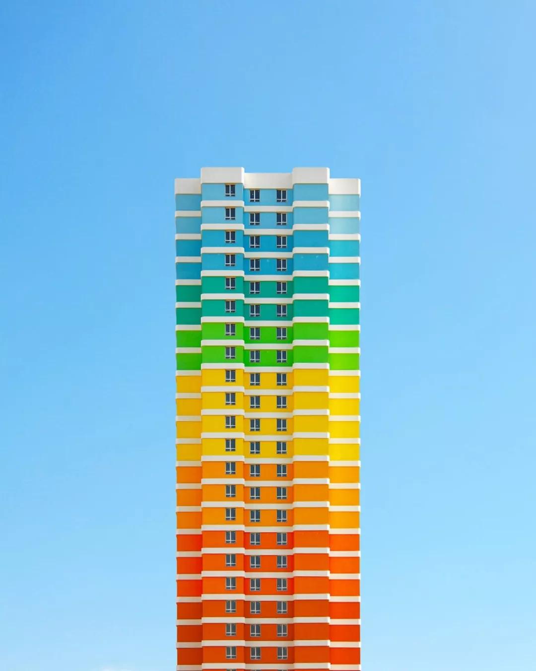 托倫把他對建筑設(shè)計(jì)和攝影的喜愛完美的結(jié)合在了一起,他所拍攝的彩虹建筑就像是從電影中截取出來的圖片。