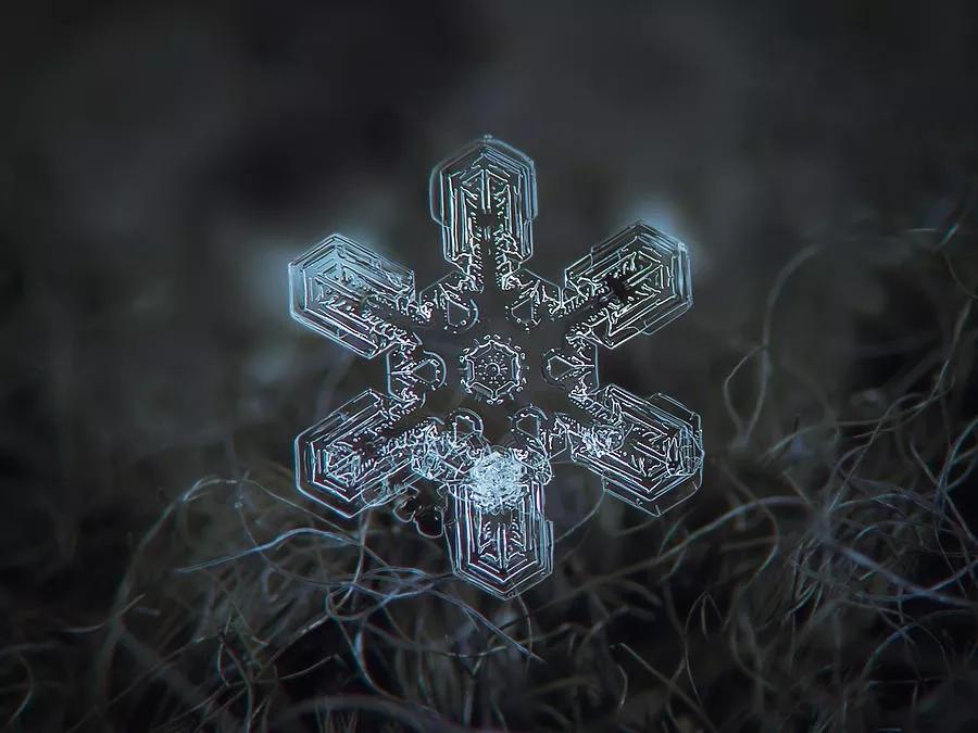 同樣是拍雪,另一位來自俄羅斯的攝影師阿列克謝·克拉托夫(Alexey Kljatov)卻采用了完全不同的方式拍攝——他喜歡近距離記錄雪花的結(jié)構(gòu)形態(tài)。