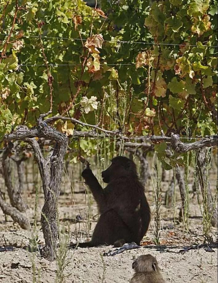 和托斯卡納暴殄天物的野豬相比,南非開普敦的狒狒顯然有著更挑剔的品味。隨著葡萄酒業(yè)的興盛,當(dāng)?shù)蒯翎襞c時俱進,發(fā)展出了新潮的昂貴品味——吃葡萄。當(dāng)?shù)厝松踔量偨Y(jié)出了經(jīng)驗:狒狒最愛吃黑皮諾和霞多麗,它們能辨別出最甜美的果實,只把自己看不上的酸澀葡萄留給釀酒師。