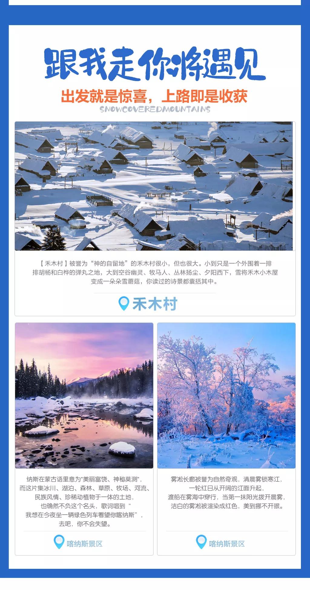 當日行程:早餐后,我們乘坐【馬拉爬犁】前往觀景臺,乘坐著這種最原始的交通工具,穿梭在白雪皚皚的蒼茫林海,馬拉爬犁呼嘯而過,卷起一路的雪塵飛揚;