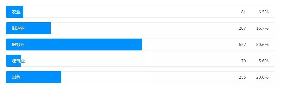 本次接受調(diào)查的企業(yè)中,占比最多是服務(wù)業(yè)企業(yè),超過(guò)50%,這跟目前全國(guó)民營(yíng)企業(yè)在一二三產(chǎn)業(yè)中分布格局基本吻合,因此本次調(diào)研結(jié)果具備一定的可參考性。