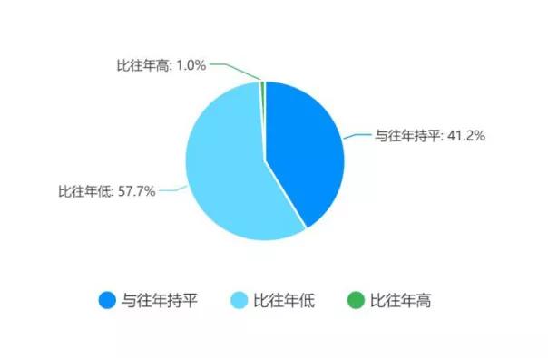 根據(jù)數(shù)據(jù)可以看出,57.7%的企業(yè)返工率預(yù)計(jì)比去年低,41.2%的企業(yè)預(yù)計(jì)返工率比去年相比持平,所以可以看出返工率受到較大影響、接近60%的企業(yè)不能準(zhǔn)時(shí)復(fù)工,不僅對(duì)抗擊疫情的物資供應(yīng)可能造成影響,更可能會(huì)影響企業(yè)的正常運(yùn)轉(zhuǎn),較大地增加企業(yè)的運(yùn)營(yíng)壓力。