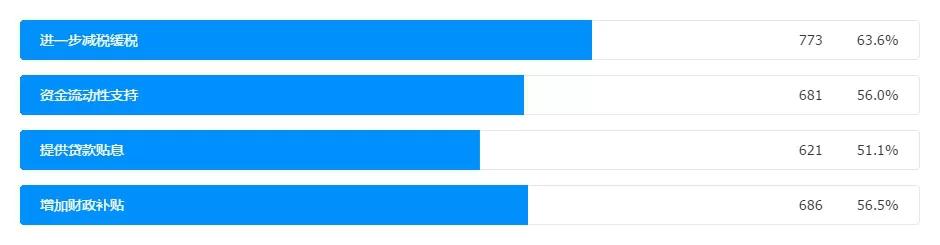 這其中關(guān)于減稅呼吁達(dá)到63.6%,建議增加財(cái)政補(bǔ)貼達(dá)到了56.5%,希望獲得流動(dòng)資金支持達(dá)到了56%。這些數(shù)據(jù)提示,各地政府在后續(xù)支持民企發(fā)展的工作中,可以將這幾項(xiàng)政策的出臺(tái)作為重點(diǎn)推進(jìn)。