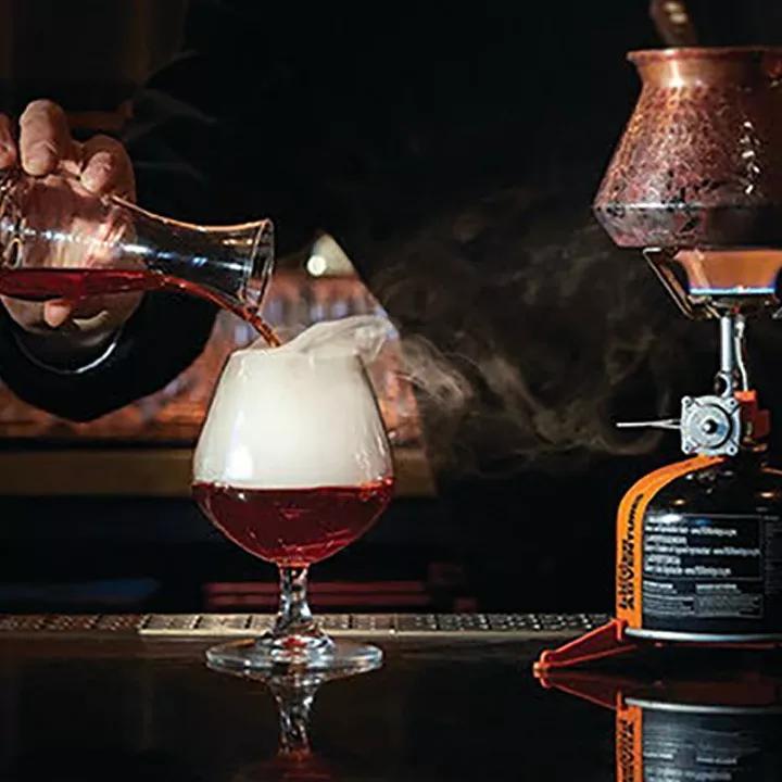 “Chinato是味美思的絕佳替代品,具有草本的復(fù)雜性,干橙皮烈酒則會更加釋放它的味道”,F(xiàn)ilkins說,“當酒呈上來的時候,煙霧增加了驚喜的氛圍,巧克力和豆蔻則帶來豐富的芳香和的溫暖的烘焙口感。”