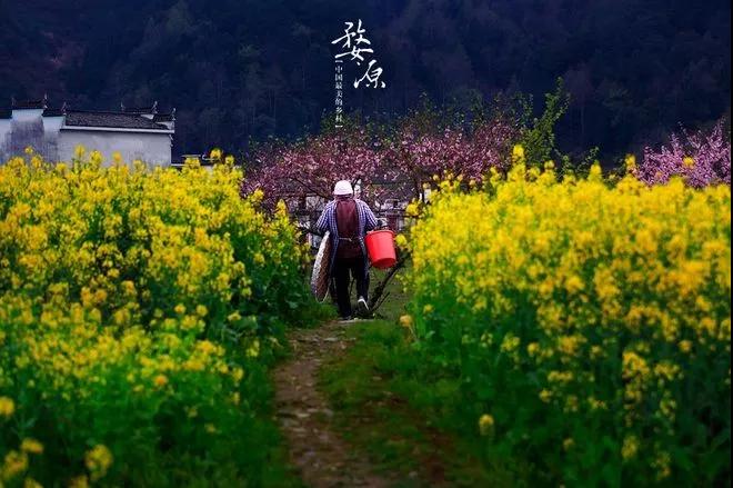 這張照片吸引人的原因就是因為前面這塊油菜花的線條非常有延伸感,而且還有圓形作為一個前景,背景是徽派的古建筑,遠處的山峰,照片的層次非常好,非常有特點,運氣好的時候,遇上云霧會更漂亮。