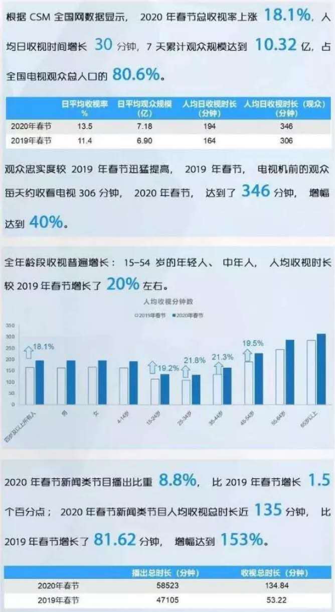 10、電視新聞節(jié)目人均收視總時長增153%,省級衛(wèi)視收視率漲23%
