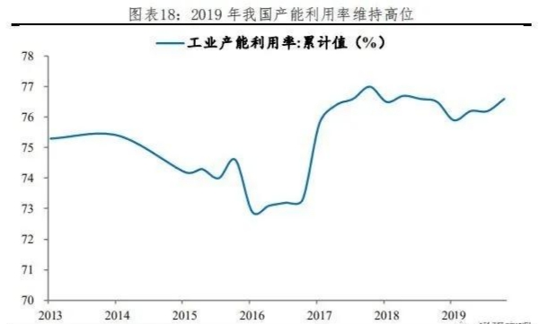 “三去一降一補”成果穩(wěn)固。去產(chǎn)能方面,2019年全國工業(yè)產(chǎn)能利用率為76.6%,較上年提高0.1個百分點。其中,黑色金屬冶煉壓延加工業(yè)及煤炭開采洗選業(yè)產(chǎn)能利用率分別為80%和70.6%,分別比2018年提高2和0個百分點,均為近幾年來最高水平。去庫存方面,2019年末商品房待售面積49821萬平方米,較去年減少2593萬平方米,相當(dāng)于2013年末的水平。