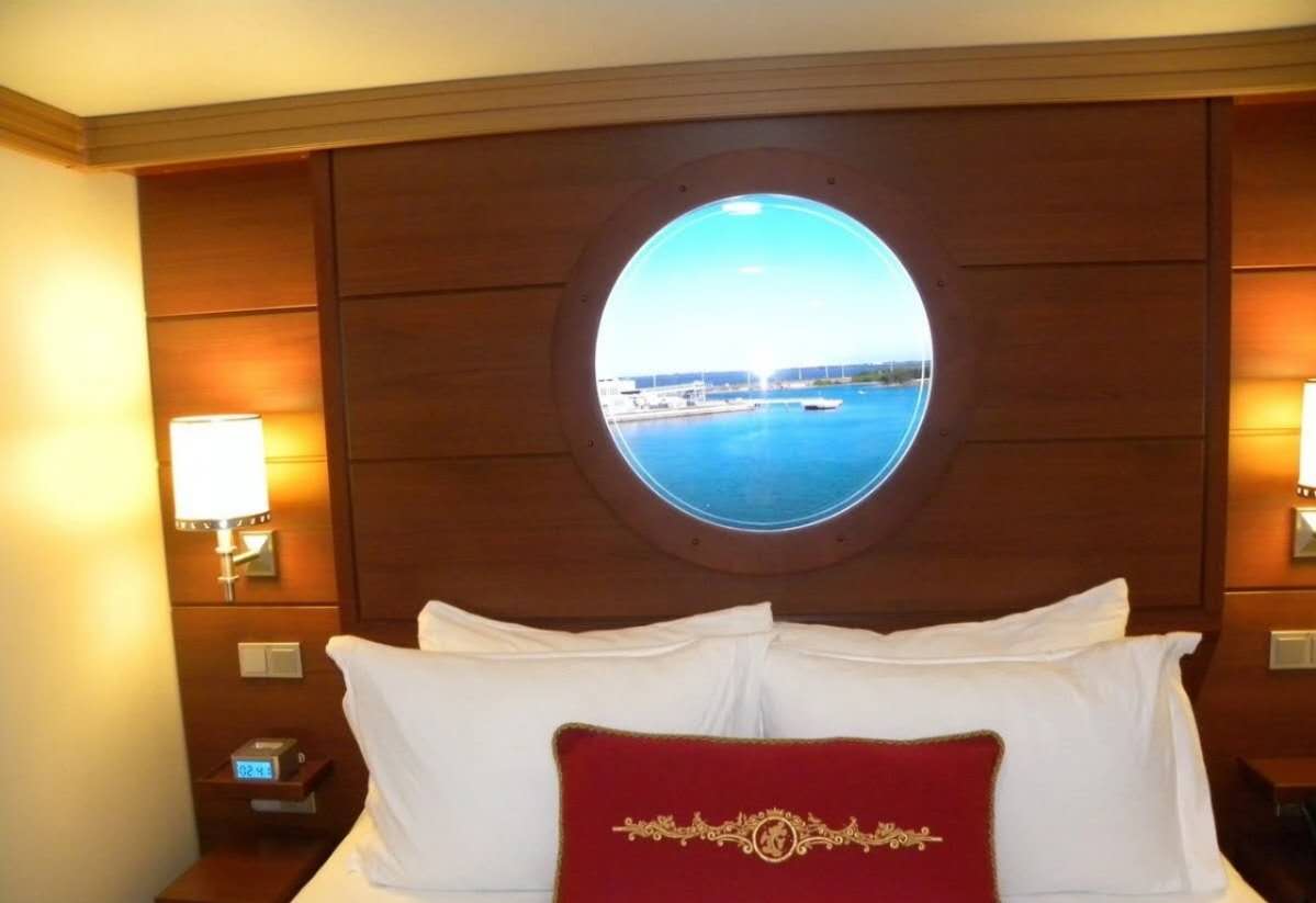 為了彌補(bǔ)住在內(nèi)側(cè)客艙的游客在客艙內(nèi)看不到海景的遺憾,“迪斯尼之夢(mèng)”號(hào)( Disney Dream)郵輪為內(nèi)側(cè)客艙提供了虛擬舷窗,通過安裝在船外的高清攝像機(jī),游客可以看到船外的實(shí)時(shí)景色,還有孩子們喜歡的動(dòng)畫。