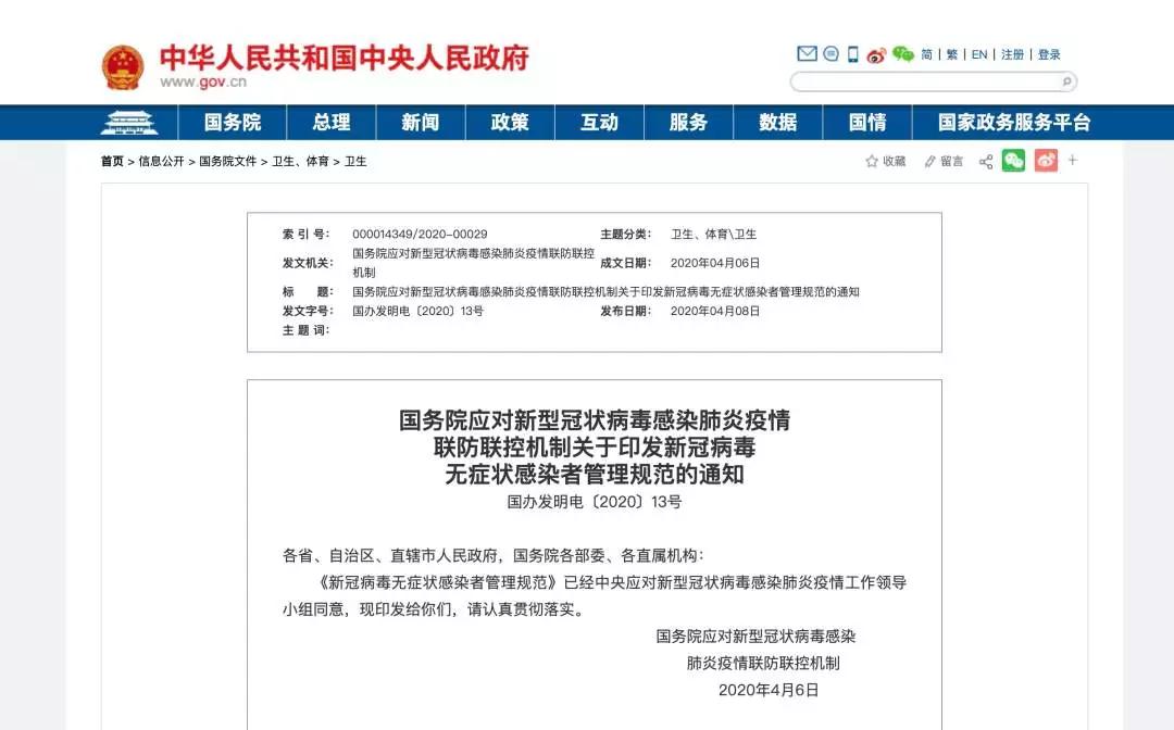 國務院應對新型冠狀病毒感染肺炎疫情聯(lián)防聯(lián)控機制關于印發(fā)新冠病毒無癥狀感染者管理規(guī)范的通知