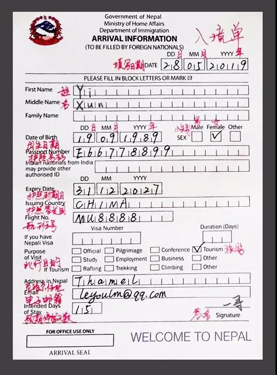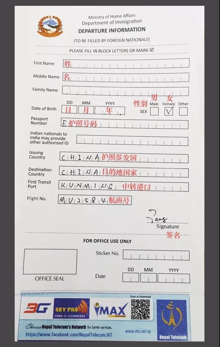 抵達加德滿都國際機場,進入航站大樓穿過走廊后,達到入境大廳。在桌子上,可以很容易找到入境卡。如果乘坐國內(nèi)航空公司飛機入境,飛機快抵達時,空乘人員會給每位乘客分發(fā)一張入境卡,如果空乘沒有主動給,自己可以在飛機上向空乘人員索要入境卡。入境卡是每個人都務(wù)必填寫的,包括已辦理好簽證和準備辦理落地簽的游客。