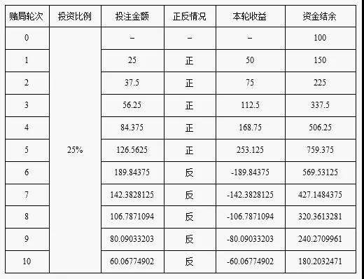 計算后每次下注比例為當(dāng)時總資金的25%,這樣就能獲得最大收益。