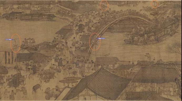 他們通過丈量街道,為商販規(guī)劃出可以擺攤的位置。商販必須在自己固定的位置里叫賣,不可越界經營?!端涡探y(tǒng)》明文規(guī)定:諸侵街巷阡陌者,杖七十?!肚迕魃虾訄D》里虹橋旁邊的那根木樁,又叫表木,就是街道司為攤販樹立的分界線的標志。