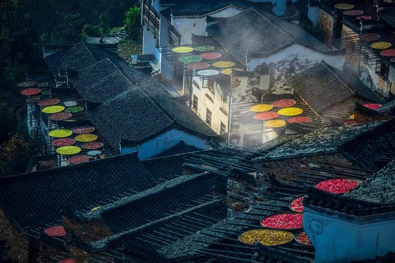 篁嶺,一個隱藏在大山深處奇特的山居村落,因其獨特的曬秋景觀、粉墻黛瓦的徽式古民居將會深深吸引著世界目光。飽經(jīng)滄桑的徽式民居土磚外墻與曬架上五彩繽紛豐收成果組合,繪就了一幅閑適、安詳、恬靜的古村風(fēng)情畫,與遠山、近水、粉墻、黛瓦相印成趣,感受天人合一的境界。