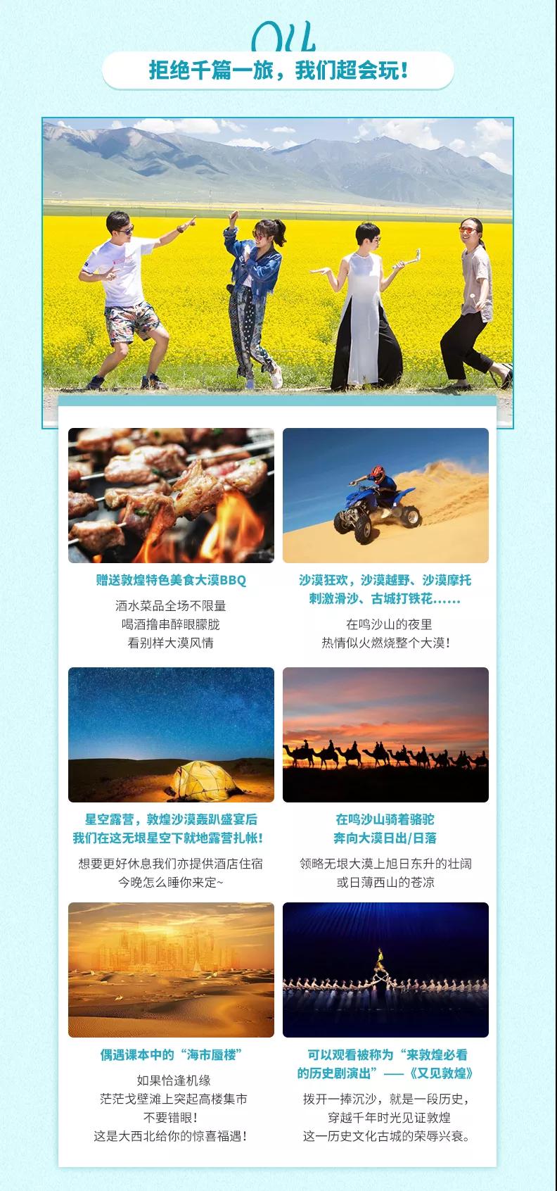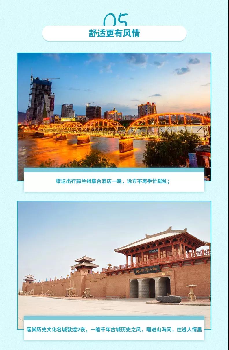 7、贈(zèng)送:贈(zèng)送特色敦煌沙漠BBQ;贈(zèng)送貼心禮包旅游三寶、魔術(shù)頭巾;贈(zèng)送蘭州市區(qū)接機(jī)/接火車(chē)服務(wù),23點(diǎn)后由于運(yùn)管規(guī)定不能接機(jī)/接站,敬請(qǐng)諒解。(贈(zèng)送項(xiàng)目不用費(fèi)用不退)