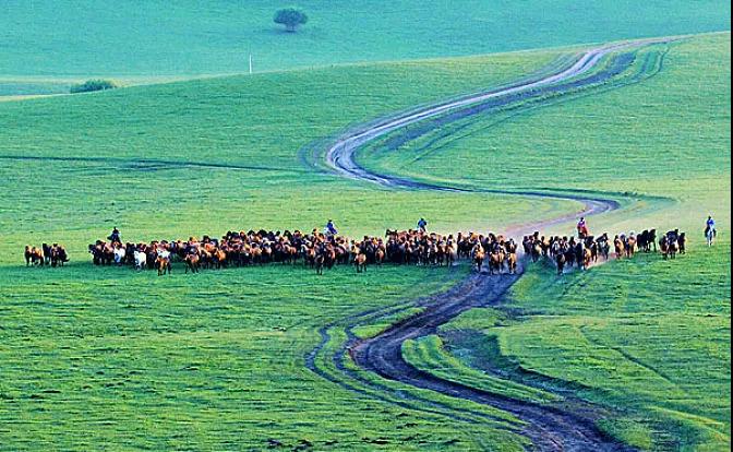 上午:【土里根河45分鐘漂流】,【越野車】2小時(費用已含),深入草原腹地,穿越河流湖泊,西林九曲十八彎,體驗滑沙,后可汗大營蒙古服飾拍照。