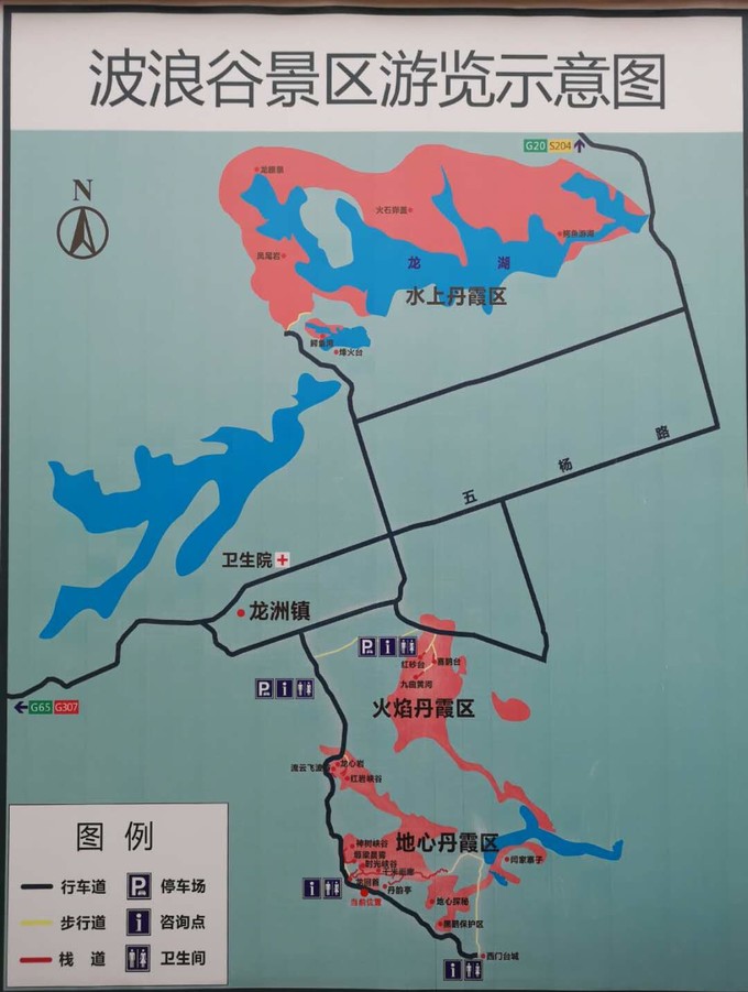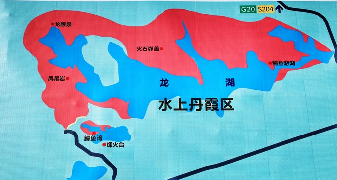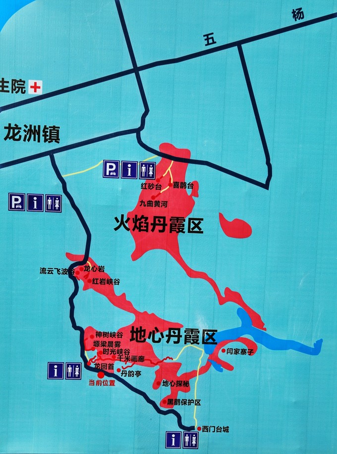 景區(qū)是很大一片區(qū)域,分為水上丹霞區(qū)、火焰丹霞區(qū)、地心丹霞區(qū)三個部分。路標指示不明確,只有“水上丹霞區(qū)”和“火焰丹霞區(qū)”兩個地方的標識,具體需要自行找路。根據(jù)當?shù)厝私榻B,整個景區(qū)有1、2、3、4、5號五個景點,1至4號可以自行開車游覽,5號由于路況不好并且有十多公里路遠,需要花200元左右請當?shù)厝藥凡拍芮巴聢D是現(xiàn)場拍的景區(qū)示意圖,能很清晰的看出景區(qū)分布,供大家參考。