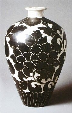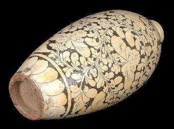 賦予創(chuàng)造性的磁州窯匠,在宋、金、元時(shí)代共創(chuàng)造了三十多種裝飾陶瓷技法,如:“白地刻劃”、“鐵銹花”、“珍珠地”、“白地褐彩”、“白剔花”、“黑釉剔花”、“芘紋刻劃”等等。