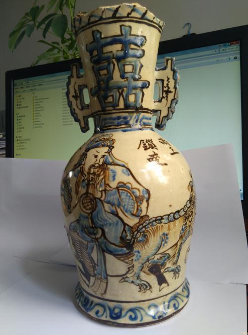 磁州窯是中國(guó)老窯口中民窯的代表,其產(chǎn)品具有濃郁的鄉(xiāng)土氣息和市井風(fēng)情。其繪畫或書法風(fēng)格往往粗獷豪放,灑脫不羈。但灑脫不等于隨意、孱弱。一件瓷器從練泥、做胎到施釉、繪畫及至最后燒成,是相當(dāng)復(fù)雜的一個(gè)過(guò)程。即便是民窯產(chǎn)品,為了使做出來(lái)的東西像樣、有市場(chǎng),在繪畫的時(shí)候,工匠還是相當(dāng)用心的,而且他畫或者寫的都是日復(fù)一日練得純熟的內(nèi)容,都有著一定的功力。而新仿的磁州窯瓷器往往為了追求民窯特點(diǎn),過(guò)于隨意,常常故意畫的散亂,人為夸張,而書法也常常孱弱無(wú)力,章法松散,露了破綻。