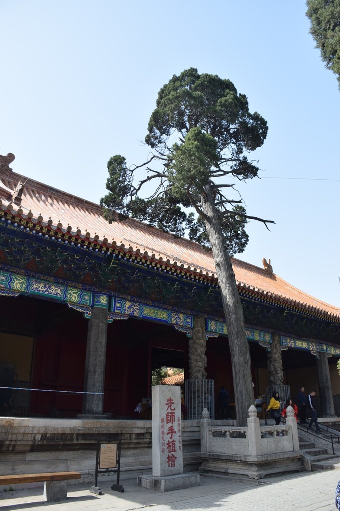 先師手植檜,相傳為孔子親手所值,歷經(jīng)數(shù)次枯榮,今樹為清雍正年重生。