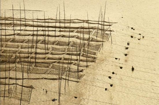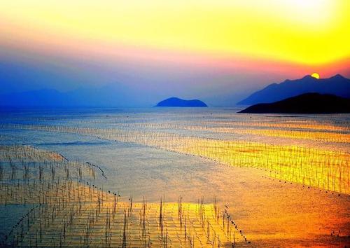北岐是拍攝霞浦灘涂最精彩的一個拍攝景點,距城關只有五公里。這里最有名的是虎皮樣的灘涂斑紋和滿灘滿海的竿影、人影和船影。漲潮時海上忙碌的船只穿梭在浮標竿影(紫菜架)之間,與波光鱗鱗的大海、遠山、島嶼渾然一體,尉為壯觀。退潮時海灘的紋理漸顯秀質(zhì),勞作的漁民游動在虎皮灘上,使得這片灘涂更具韻律美和動態(tài)美。此刻無論從哪個角度觀賞拍攝,取景框里都無法抗拒那些由光影變幻組合而成的五彩灘涂的誘惑力,這就是北岐灘涂吸引一批又一批國內(nèi)外圓眼大師為之折腰為之傾倒的魅力所在,是攝影人一生必拍的好景點。