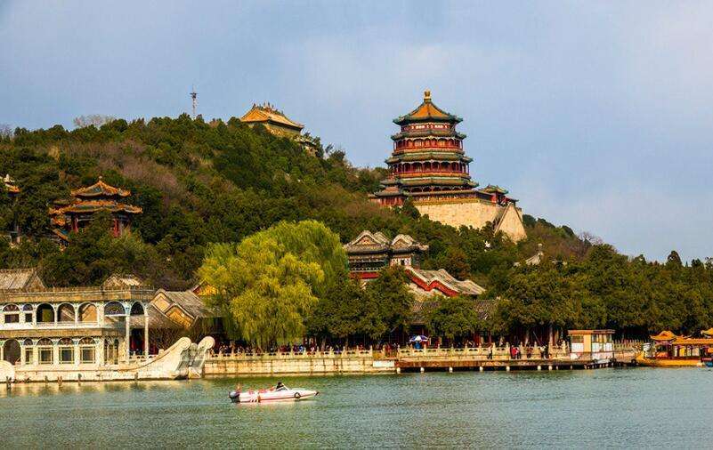 頤和園,中國(guó)清朝時(shí)期皇家園林,前身為清漪園,坐落在北京西郊,距城區(qū)15公里,占地約290公頃(2.9平方千米),與圓明園毗鄰。它是以昆明湖、萬壽山為基址,以杭州西湖為藍(lán)本,汲取江南園林的設(shè)計(jì)手法而建成的一座大型山水園林,也是保存最完整的一座皇家行宮御苑,被譽(yù)為“皇家園林博物館”。