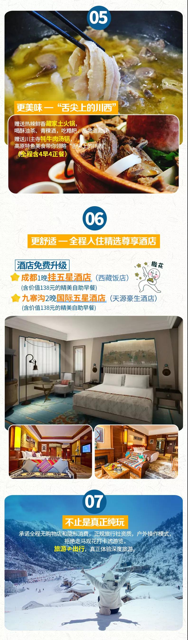 6、為了環(huán)保,九寨溝酒店均不提供一次性洗漱用品,請游客準(zhǔn)備好必要的洗漱用品。
