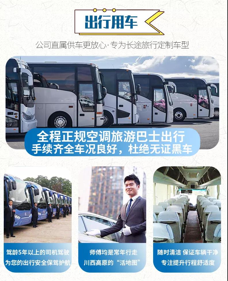 1、關(guān)于車輛交通:目前四川旅游市場8座以下車輛無法辦理旅游牌照,請游客知悉,以此理由提起的投訴我方拒不受理,望您諒解。