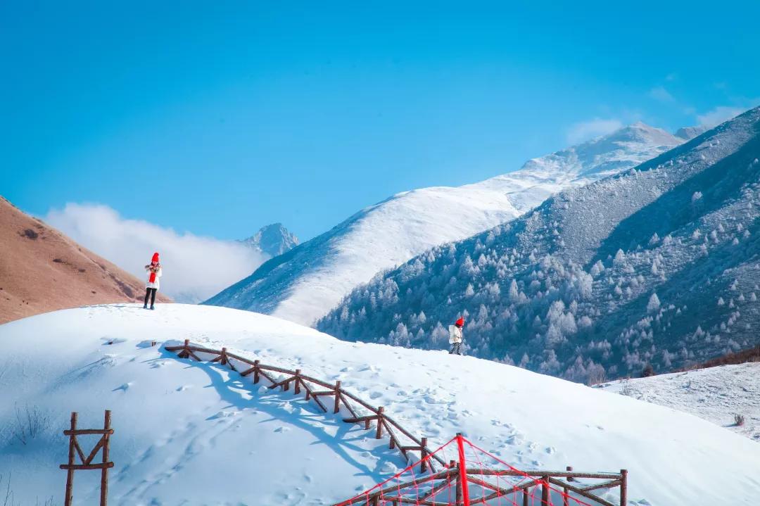 有“四姑娘山后花園”美譽的畢棚溝(不含景區(qū)觀光車60元/人-上行游客中心-龍王海/下行娜姆湖酒店-游客中心),溝內(nèi)有原始森林、絢麗多彩的植被、雪山溫泉,景觀豐富。冬季在這里我們可以看到覆滿白雪的四姑娘山,遠(yuǎn)眺藍(lán)天高山染白,奇特的萬年冰川,斑駁著枯黃與灰綠的山林;沿兩旁塞滿了楓樹、槭樹、鵝掌松、落葉松的小路踱步,冬天雖然已沒有了紅葉,但枯黃的枝丫卻平添了一番肅殺,也別有風(fēng)味。錯過了畢棚溝金秋的層林盡染沒關(guān)系,冬季畢棚溝的群山迭起霧氣繚繞會告訴你,冬天也值得。