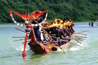 扒龍舟歷史悠久,是多人集體劃槳競(jìng)賽。龍舟競(jìng)渡分為請(qǐng)龍、祭龍神、游龍和收龍等幾個(gè)版塊。龍舟競(jìng)渡前一般都要舉行隆重的祭祀儀式,先要請(qǐng)龍、祭神。在端午前要擇吉日從水下起出,祭過(guò)神后,安上龍頭、龍尾,再準(zhǔn)備競(jìng)渡。閩、臺(tái)則往媽祖廟祭拜。在過(guò)去,人們祭祀龍神時(shí)氣氛很嚴(yán)肅,多祈求福佑、風(fēng)調(diào)雨順、去邪祟、攘災(zāi)異、事事如意。在湖北的屈原家鄉(xiāng)秭歸,也有劃龍舟祭拜屈原的儀式流傳。