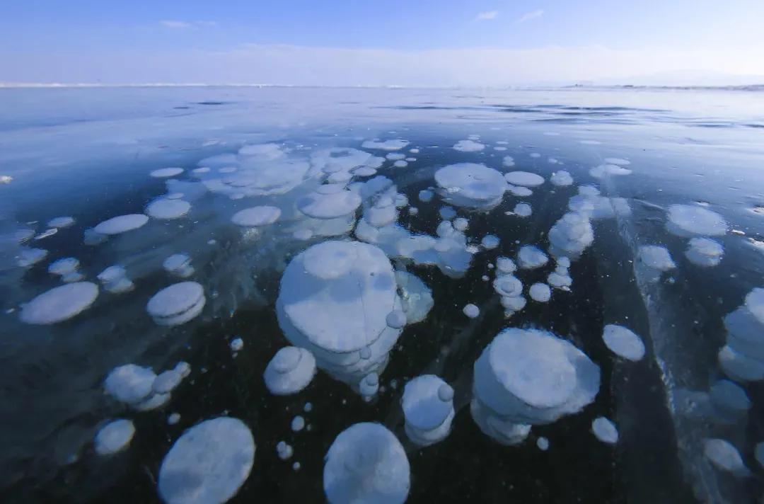 當(dāng)湖面被冰封后,踩在厚厚的冰面上,還能偶遇冰氣泡、冰裂等奇景。
