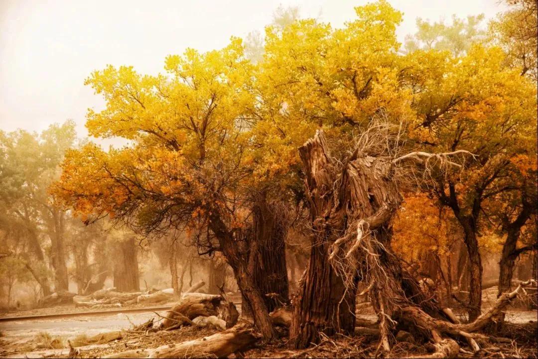 一場(chǎng)秋雨一場(chǎng)寒,當(dāng)白樺林的葉子漸漸凋零,那沙漠里的胡楊林,卻在凄美的風(fēng)中綻放著金黃的色彩,展現(xiàn)著它的不屈與壯美。