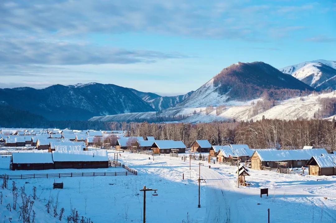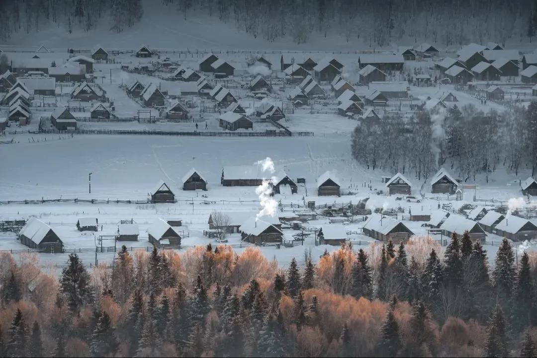 冬天的禾木,沒(méi)有絢爛的色彩,只是安靜而單純,一座座小木屋坐落在山地雪原中,那迷人的風(fēng)景宛如一幅幅水墨畫(huà)卷。
