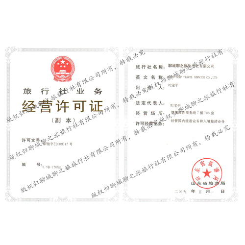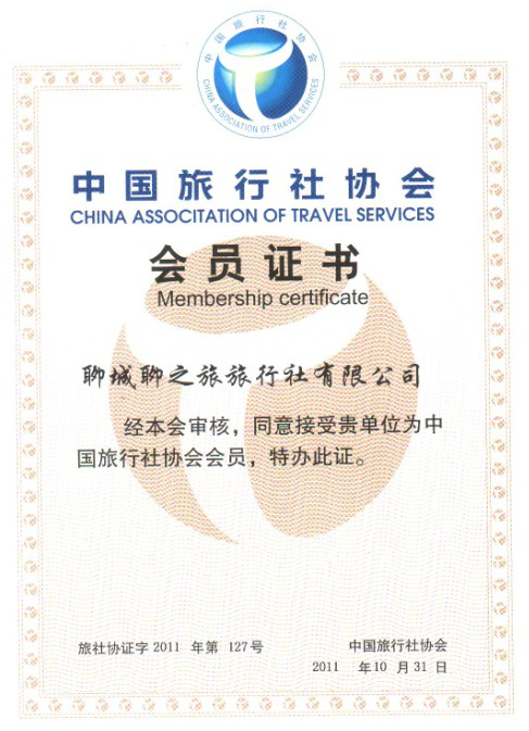 我公司是聊城唯一中國(guó)旅行社協(xié)會(huì)會(huì)員單位