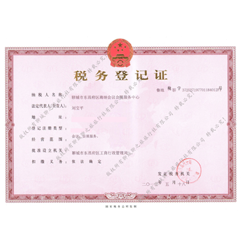 海納會(huì)議會(huì)展服務(wù)中心稅務(wù)登記證