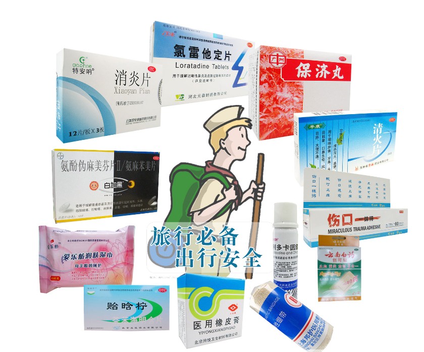 一瓶清水,除了解渴,還可沖洗傷口;毛巾、圍巾,可以擦拭傷口,防止出血,還可驅蟲、防曬等;黃連素、感冒藥、創(chuàng)可貼、繃帶、暈車藥、消毒紙巾、酒精;慢性病患者帶上常用藥,老人還可備盒速效救心丸。