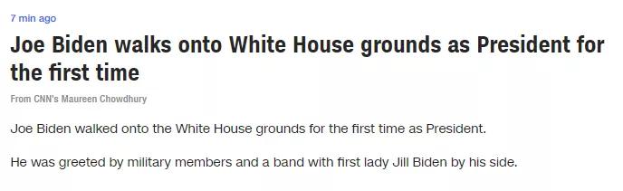 拜登首次以美國(guó)總統(tǒng)身份步入白宮