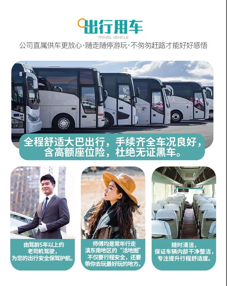 接站服務(wù):3人及以上同時(shí)報(bào)名同一航班/車次,贈(zèng)送昆明市區(qū)接機(jī)/接火車服務(wù)一次。接機(jī)/接火車的工作人員會(huì)在您出發(fā)日期前一天21:30之前向您推送消息并與您聯(lián)系,如果超過時(shí)間沒有接到任何通知,請(qǐng)及時(shí)與導(dǎo)游或報(bào)名處聯(lián)系。(節(jié)假日用車人數(shù)較多情況下客人等待時(shí)間可能會(huì)延長(zhǎng))