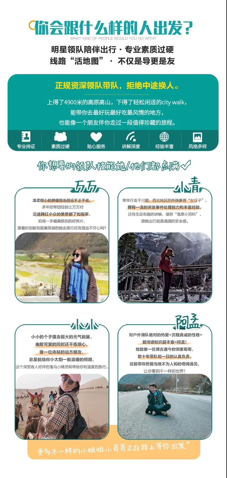 私人訂制:我們業(yè)務(wù)范圍囊括了全國(guó)各大城市,川西、西北、東北,在路上永遠(yuǎn)有我們的身影。我們將為每一個(gè)有定制需求的你策劃出獨(dú)屬于自己的完美旅行。