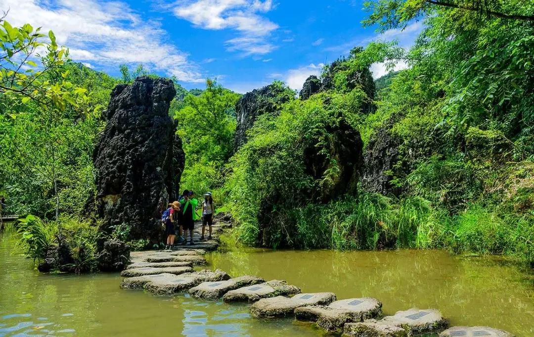 上午:早餐后乘車前往荔波。抵達(dá)后用中餐,后游覽世界自然遺產(chǎn)地,中國最美麗的地方之一【小七孔景區(qū)】(不含小七孔電瓶車40元/人,保險10元/人,必須消費敬請自理)在寬僅1公里、長12公里的狹長幽谷里,集洞、林、湖、瀑、石、水多種景觀于一體,玲瓏秀麗,有“超級盆景”的美譽。游覽景區(qū)名字由來地【小七孔古橋】。欣賞景區(qū)靈動多姿的各色瀑布:起迭著【68級跌水瀑布】,順贄而下,奔瀉而去;【拉雅瀑布】布精巧醉人,水珠飛濺;【臥龍?zhí)镀俨?/strong>】銀絲瀉地,潭水色彩斑斑斕絢麗;【翠谷瀑布】在群峰緊鎖中蒼翠欲滴。感受赤足濕身樂趣的【水上森林】,清澈的水流沖刷著青石,行走于其中,宛若身臨瓊瑤仙池;【鴛鴦湖泛舟】(不含鴛鴦湖游船30元/人,非必須消費項目,自愿消費)—尋找一份愛情;嫵媚而迷人的【響水河】更是貫穿了整個風(fēng)景區(qū)。