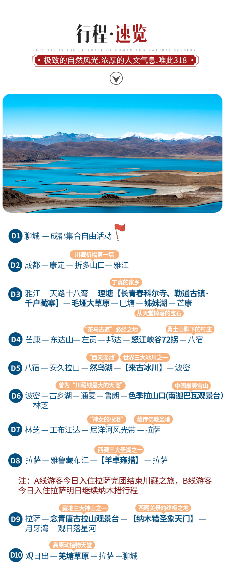溫馨提示:A線游客今日入住拉薩散團(tuán)結(jié)束川藏尋春之旅,B線游客今日入住拉薩明日繼續(xù)納木措行程。