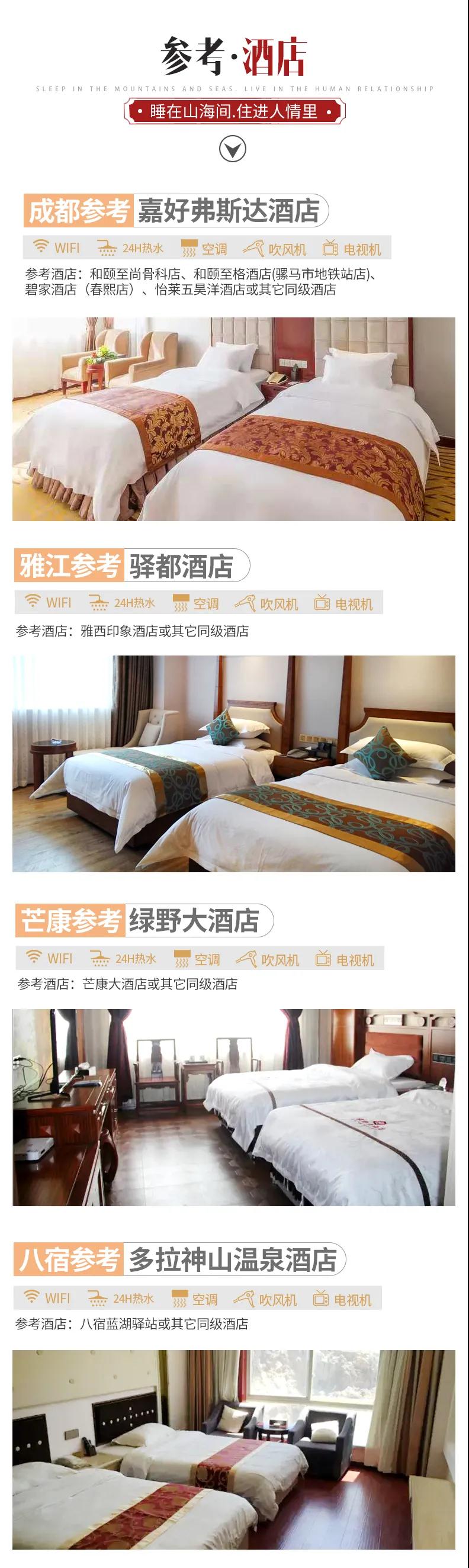5、該線路為特種線路,當(dāng)?shù)鼐频昙安惋嫍l件無(wú)法與城市相比,請(qǐng)游客做好心理準(zhǔn)備;賓館內(nèi)無(wú)牙膏牙刷、拖鞋等一次性衛(wèi)生用品,請(qǐng)自備個(gè)人衛(wèi)生用品;沿途商店較少,民俗習(xí)慣亦有不同,游客可自備咸菜、小吃、干糧等零食,以備不時(shí)之需。