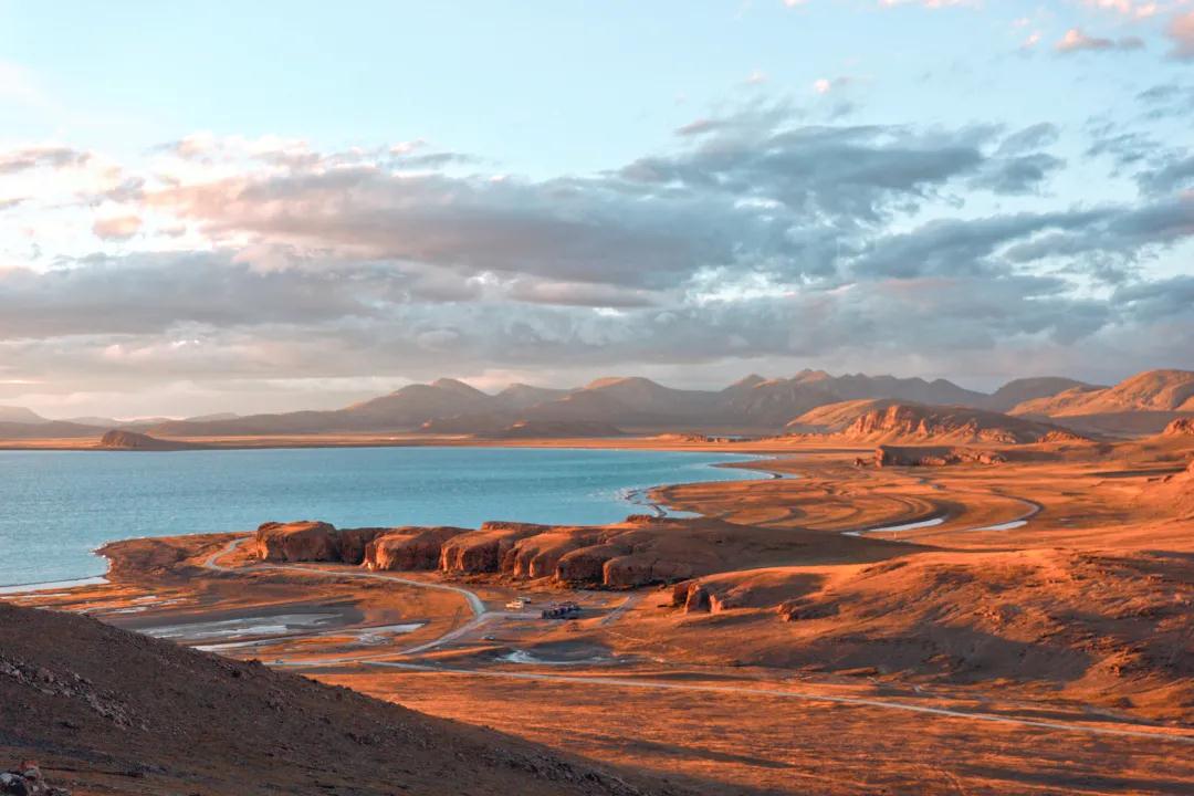 想看日出的朋友們今天就得起個(gè)早了哦~如果說(shuō)納木措的日落是絢爛的,那它的日出就是寧?kù)o而壯觀的。頭頂泛著魚(yú)肚白,然后當(dāng)水天相接的地方閃現(xiàn)出第一縷光,金光便開(kāi)始爭(zhēng)相恐后地從深淵中躍出來(lái),打破這太過(guò)沉默的晨,直到這輪旭日完全沖破云層,晨曦播撒在納木措的湖面上、山坡上、草地上,柔和的光暈照亮了整個(gè)大地。見(jiàn)證靜謐如何生出熱鬧,見(jiàn)證黑夜如何誕出光明,除了壯觀,別無(wú)他言。