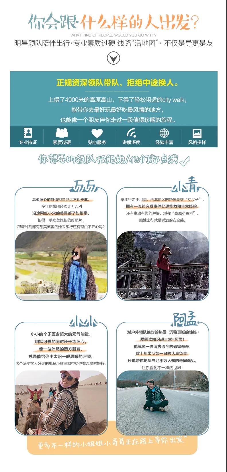 3、沿途會經(jīng)過少數(shù)民族聚居族地區(qū),請游客尊重當(dāng)?shù)刈诮绦叛?、民俗民風(fēng),遵守景區(qū)規(guī)定。行程若存在景點(diǎn)需騎馬,為您的安全著想,騎馬必須由馬夫牽韁方能騎行,請勿獨(dú)自騎馬或騎馬奔跑,險(xiǎn)路及下坡路必須下馬步行,否則造成的損傷,概由游客自行承擔(dān)。
