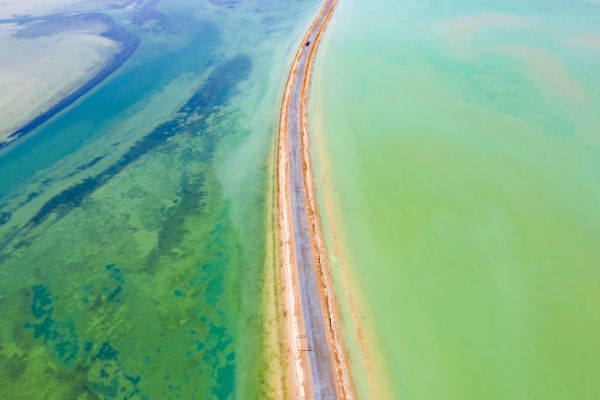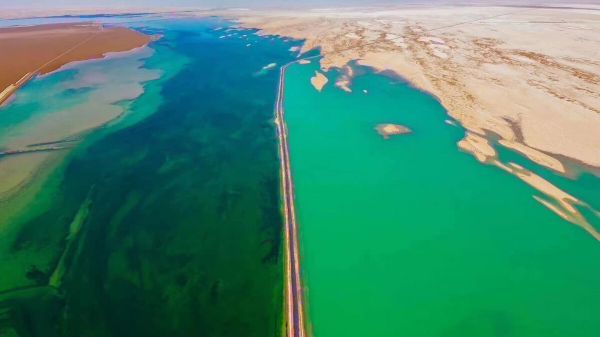 西臺吉乃爾湖俗稱“雙色湖”,此湖被G315國道從中穿過,將湖面分為兩半,一側(cè)湖水因富含銅離子而呈現(xiàn)淺綠色,一側(cè)湖水因含有硫酸亞鎂而呈深藍色,奇特又漂亮,被戲稱為“鴛鴦火鍋”。