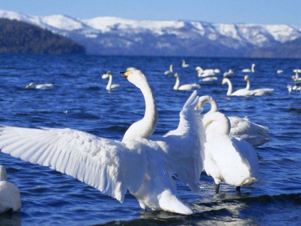 巴音布魯克天鵝湖,是亞洲最大、我國唯一的天鵝自然保護區(qū),棲息著我國最大的野生天鵝種群。位于新疆和靜縣巴音布魯克草原境內(nèi),平均海拔2400米,總面積約1100平方公里,由無數(shù)條曲曲彎彎的大小湖組成。巴音布魯克草原是僅次于鄂爾多斯的我國第二大草原,面積2.4萬平方公里,海拔2,300-2,800米。該地區(qū)的居民主要是蒙古族,約占該地區(qū)人口的78%。當?shù)孛晒抛迥撩駥μ禊Z倍加保護,與天鵝恬然相處。每逢春季,冰雪解凍,春暖花開之時旅居在印度、緬甸、巴基斯坦,甚至遠到黑海、紅海和地中海沿岸諸國的大天鵝、小天鵝、疣鼻天鵝為主的上萬多只珍禽,不遠萬里,成群結隊地飛到巴音布魯克棲息繁衍。當冬季來臨,他們又攜帶家眷,飛越喜馬拉雅山南離去。